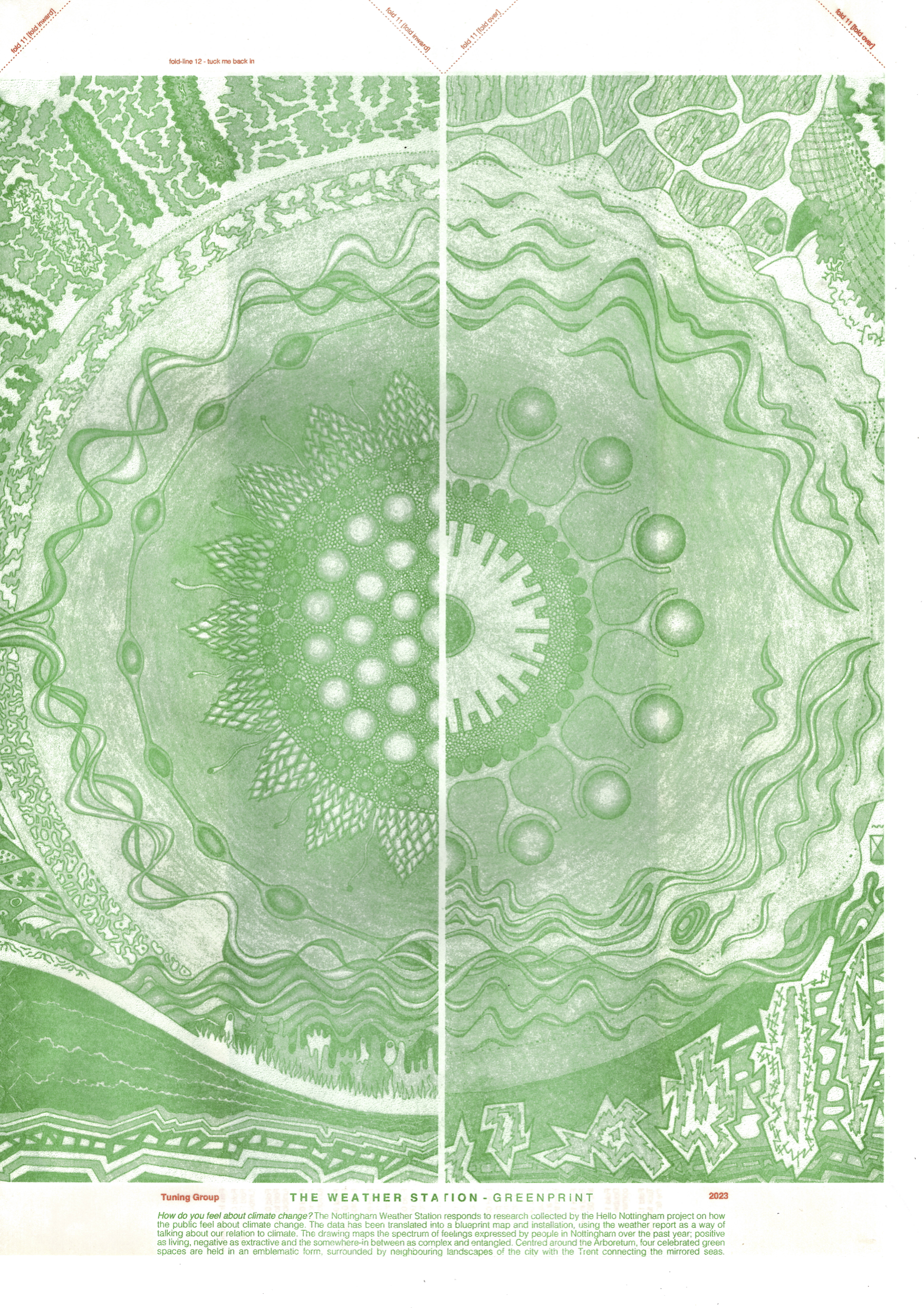 The Weather Station uses sentiment analysis data for how people in Nottingham feel about climate change, and translates this into a multisensory public art experience at the Nottingham Green Festival in summer 2023, during the intense heatwaves. The installation mapped the data into Nottingham’s landscape at different degrees of warming, the deckchairs and fan-maps provided climate warming infrastructure and the weather report articulated all of these in the style of the shipping forecast. The project is ongoing and iterative.