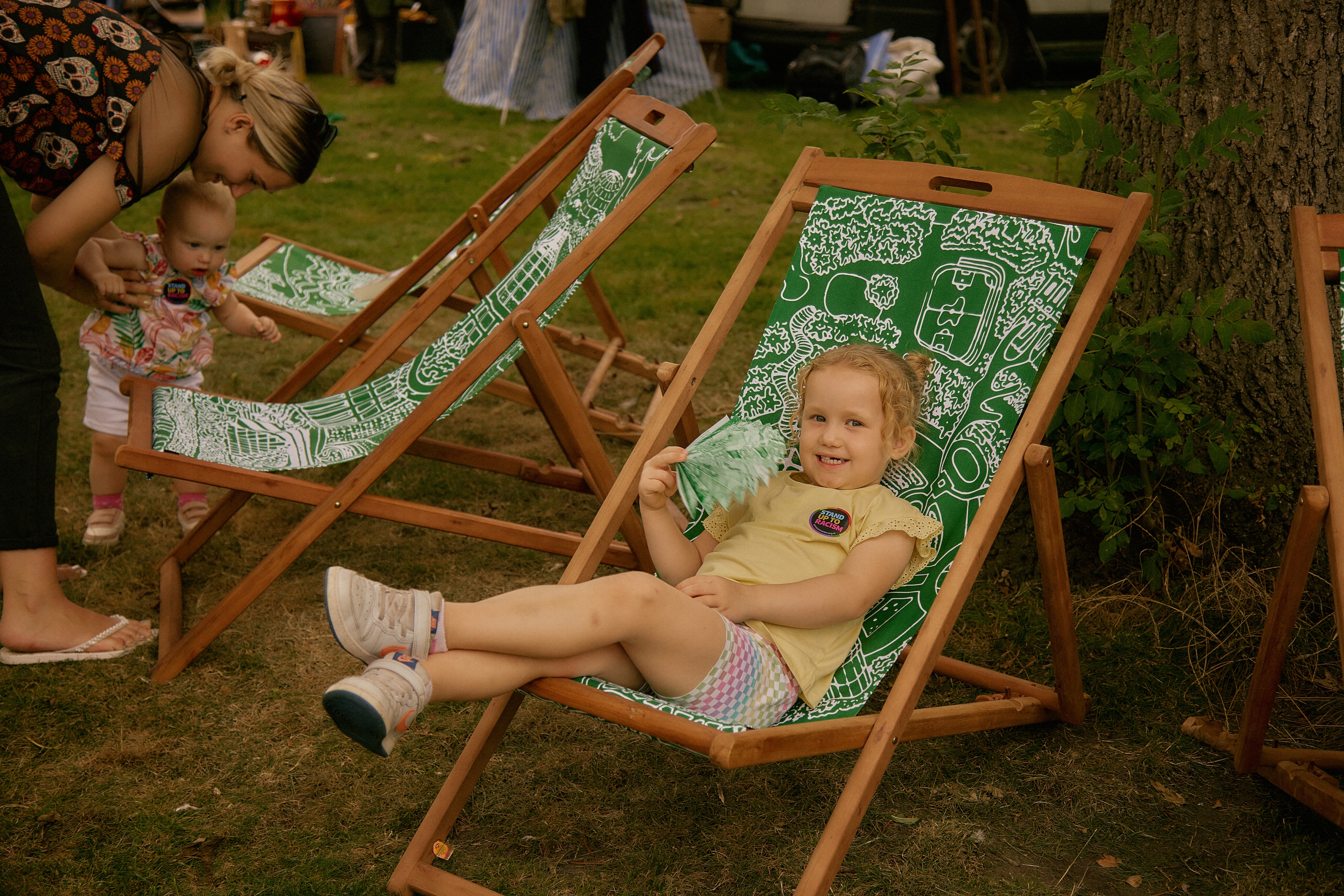 Organic cotton, upcycled deckchairs, riso-print on recycled paper